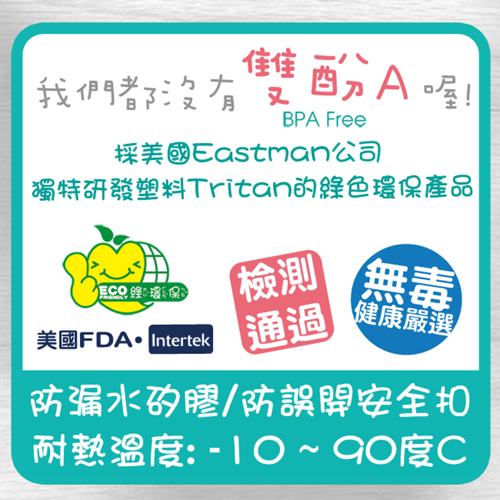 - 瓶身-Tritan 共聚聚酯 , 瓶蓋-PP 聚丙烯