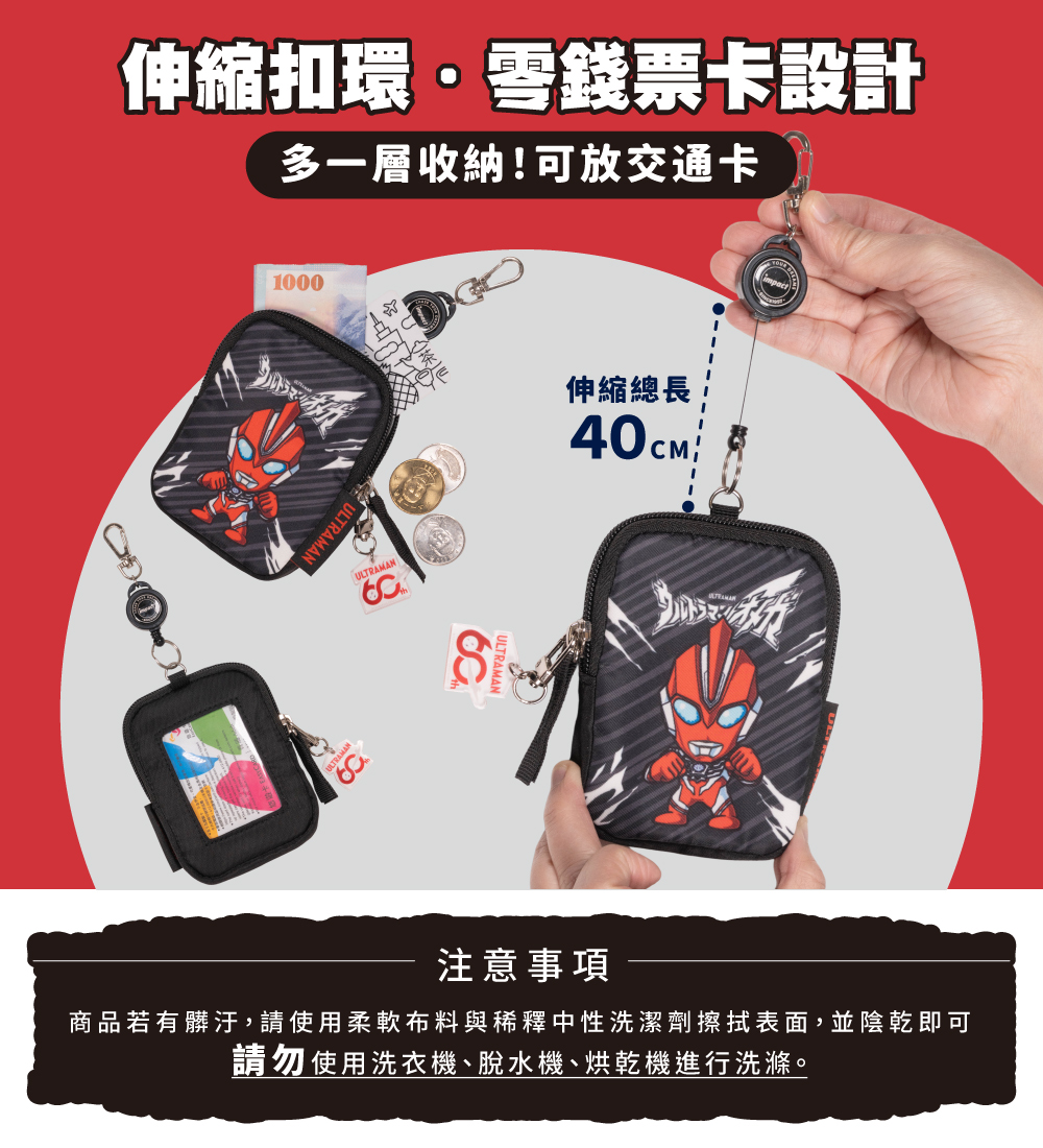 【IMPACT】怡寶 | Ultraman超人力霸王奧米加伸縮票卡零錢包-黑 IMUTL08BK