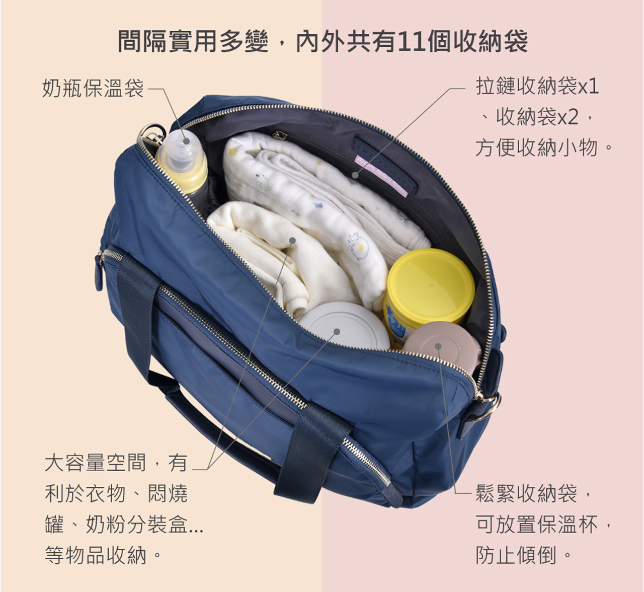 款托特包款式多達11個口袋,包括多個分隔位及底部拉鍊袋。JMA系列包款均設有保溫袋且防滲透性佳,便於擺放冷熱飲品或輕食, 省卻額外攜帶保溫袋。